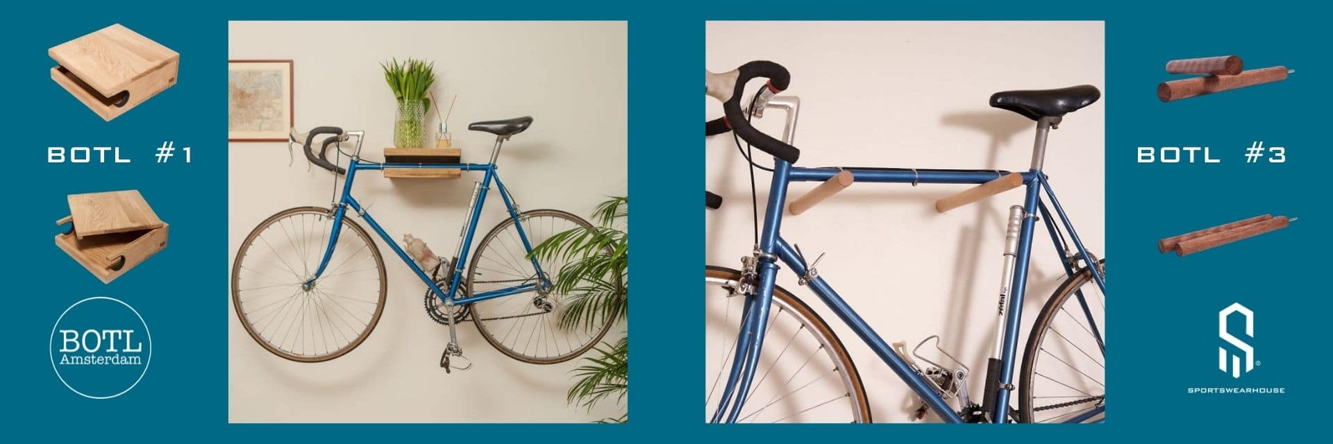 BOTL Amsterdam heeft hiervoor met de BOTL  #1 en de BOTL #3  houten fietsenhanger ontworpen om de woonruimte te maximaliseren zonder in te boeten aan stijl. Met één van deze fietsen hangers kan jij je racefiets probleemloos veilig thuis opbergen!