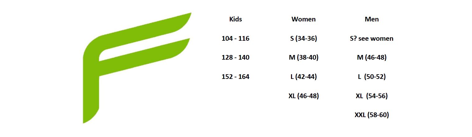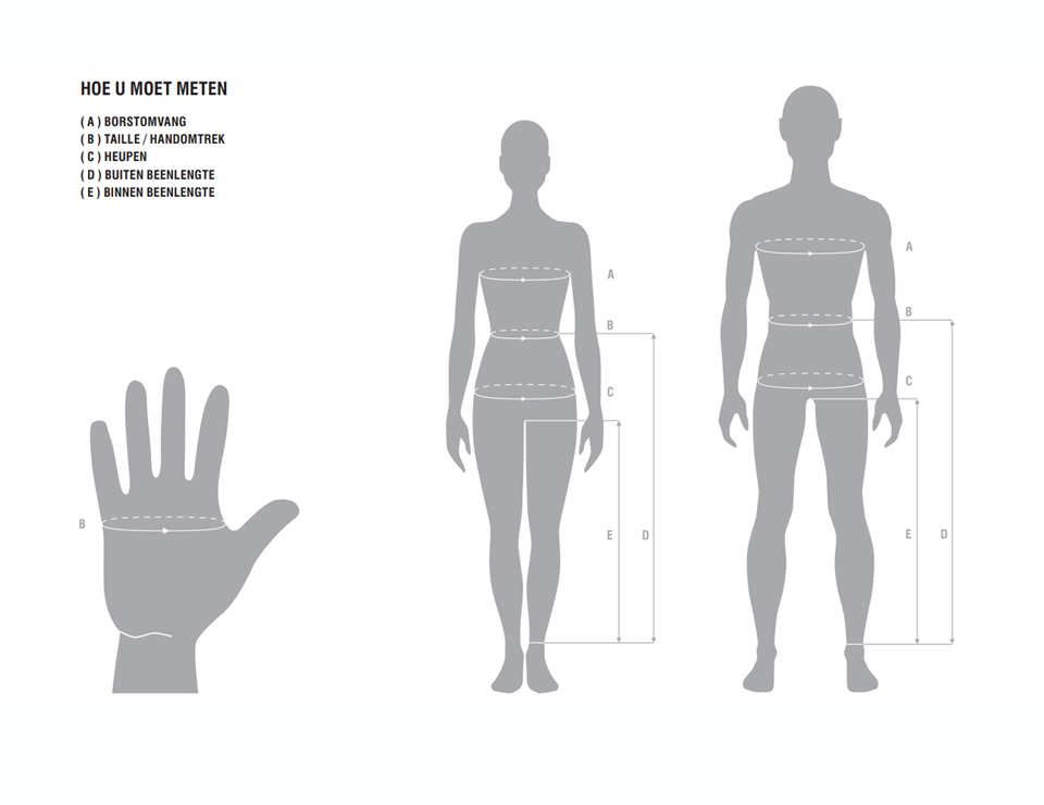 Bij Noord-Europese maatvoering; je normale confectiemaat is ook de maat van deze sportkleding.