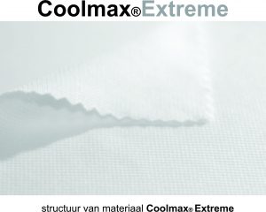 Coolmax®Extreme is materiaal gevormd met een speciale hexagoon gevormde vezel. De unieke vorm van het vezeloppervlak zorgt voor veel snellere zweetverwijdering uit het lichaam en houdt het in maximale droogheid en comfort, zelfs bij hoge lichaamsbelasting. Ook in extreme temperaturen. Coolmax®Extreme is slijtvaster dan Lago®.