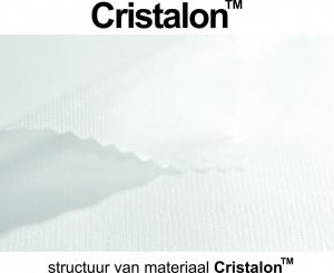 Cristalon™ is zeer geschikt als materiaal voor regenjassen vanwege de waterdichtheid. Het is ook windproof, zeer klein op te vouwen en heel compact in de achterzak mee te nemen. Het materiaal is transparant waardoor de kleur, het design en de teksten eronder zichtbaar blijven.