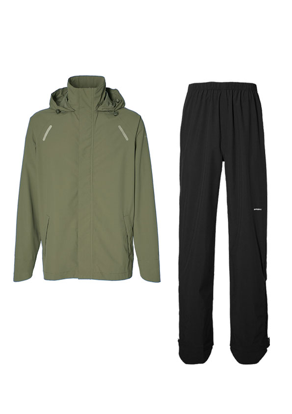De verlengde achterzijde van het jack zorgt ervoor dat je rug bij een sportieve houding droog blijft. Verder is de jas voorzien van steekzakken en een verlengde bovenkant van de mouwen. De 40 centimeter hoge rits zorgt voor gemak bij het aantrekken van de regenbroek en de elastische taillebrand voorkomt dat de regenbroek afzakt. De hoogwaardige reflectie bevordert de veiligheid tijdens een fietsrit in de vroege ochtend of in de avond. Het unisex regenpak in de groene kleur wordt geleverd in een opbergzakje en is er in maat S tot en met XXXL.