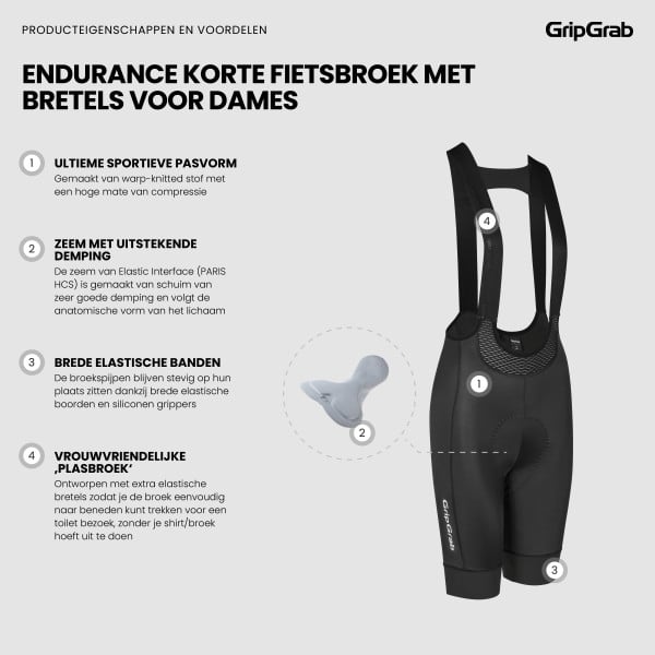 Kenmerken GripGrab Bibshorts Endurance met bretels woman: