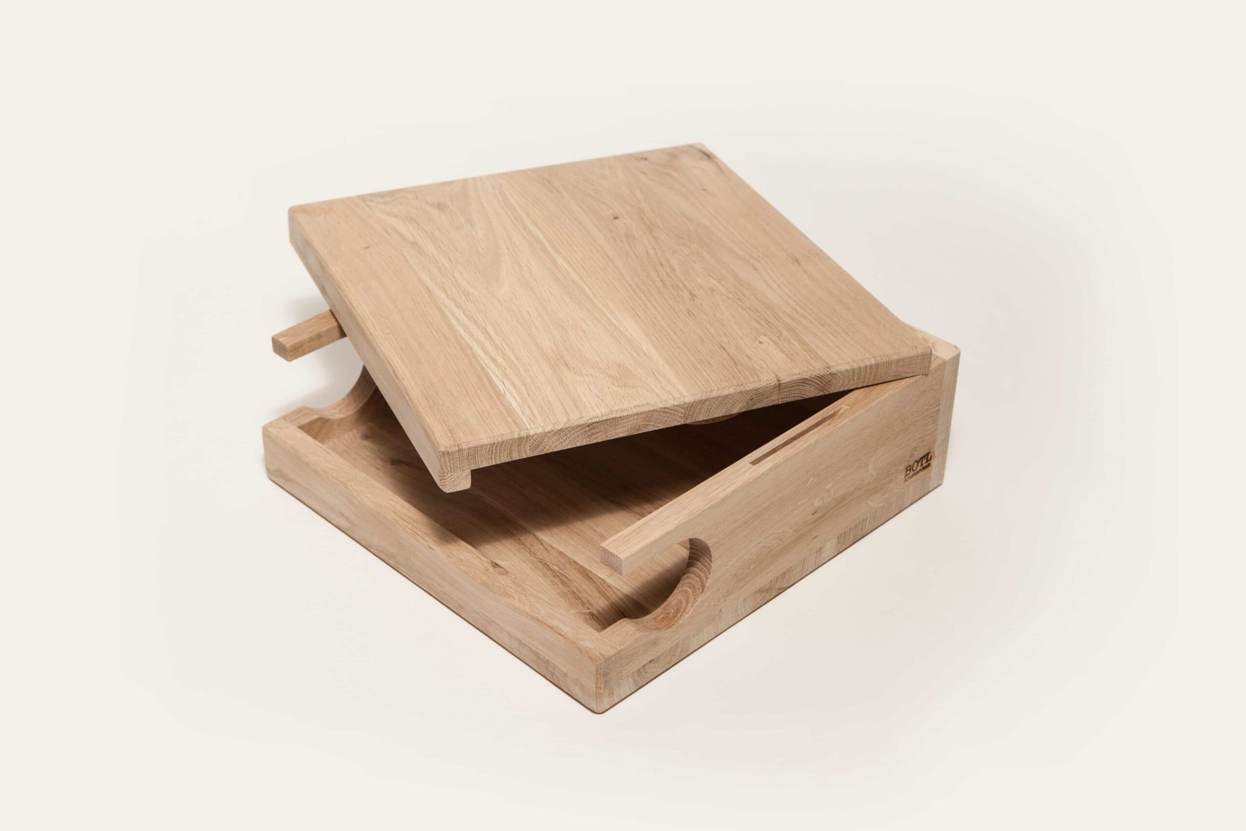 2) Haal voorzichtig de deksel van de fiets houder af. Wees voorzichtig: onder de deksel bevinden zich meerdere (onzichtbare) houtverbindingen.