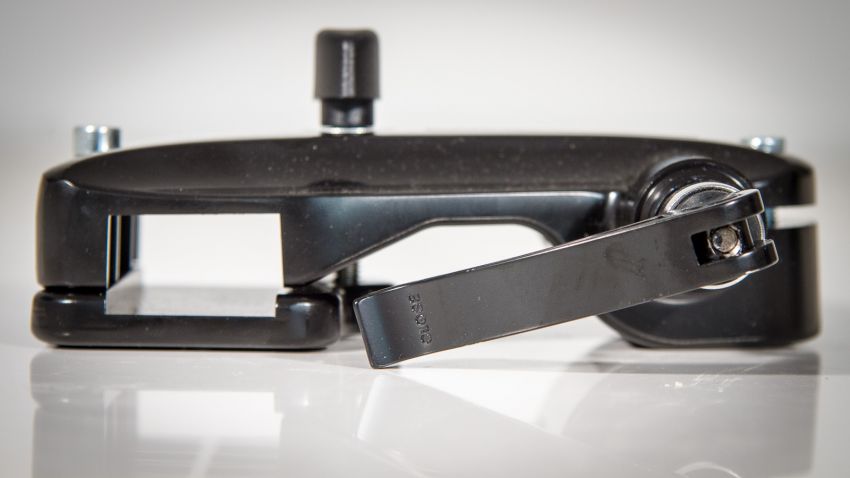 Fietsdragers Bikeinside accessoires: Bij de vorkbevestiging worden de fietsen met hun vork door middel van een snelspanner aan de dwarsstang bevestigd. De vorkbevestiging is gemaakt van gesmeed aluminium en is geschikt voor vorken met een 9/100 mm snelspanner.