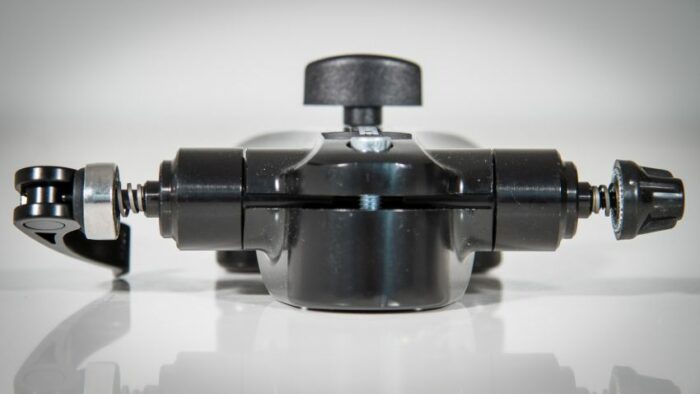 De vorkbevestiging kan zonder gereedschap traploos met duimschroeven op de dwarsbalk worden bewogen en 180° worden gedraaid. Dit maakt een snelle en variabele positionering van de fietsen mogelijk.