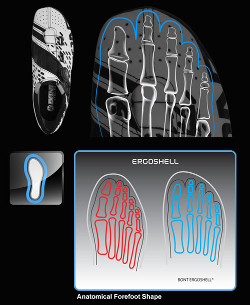 De Bont Cycling Riot+, ’s werelds eerste koolstofcomposiet- en warmtevormbare fietsschoen ontworpen voor wielrennen op de weg, nu verkrijgbaar met bewezen BOA-retentiesysteem. De Riot+ combineert de technische kenmerken van Bont Cycling uit de professionele serie, waaronder een anatomisch krachtoverbrengingsplatform voor meer efficiëntie, vervangbare zoolbeschermers, unieke vormgeving van koolstofcomposiet, materialen van wedstrijdkwaliteit en BOA-retentiesysteem om de meest technisch geavanceerde instapschoenen voor op de weg te creëren. Alle schoenen van Bont zijn geheel aanpasbaar aan de voet. Deze fietsschoen is de meest warmtevormbare schoen die momenteel op de markt is. De hars van Bont wordt in eigen huis ontwikkeld en is in 36 jaar geperfectioneerd tot een extreem stijve hars die plooibaar wordt bij relatief lage temperaturen. De basis van de schoen is vormbaar, wat betekent dat alle stijve delen van de schoen in een standaard oven kunnen worden gevormd.