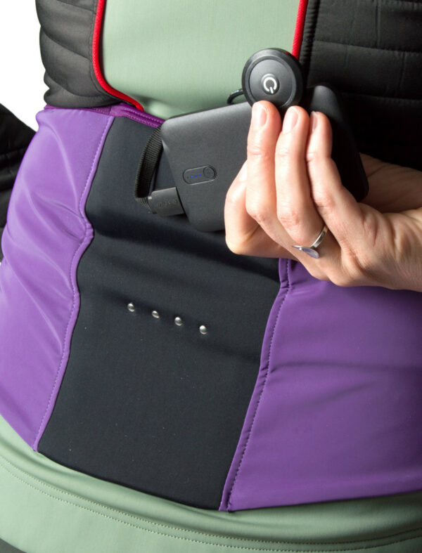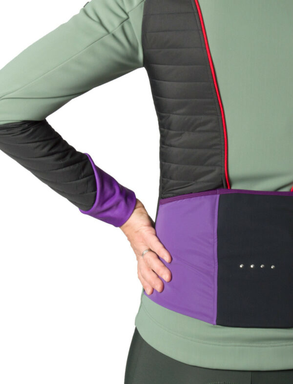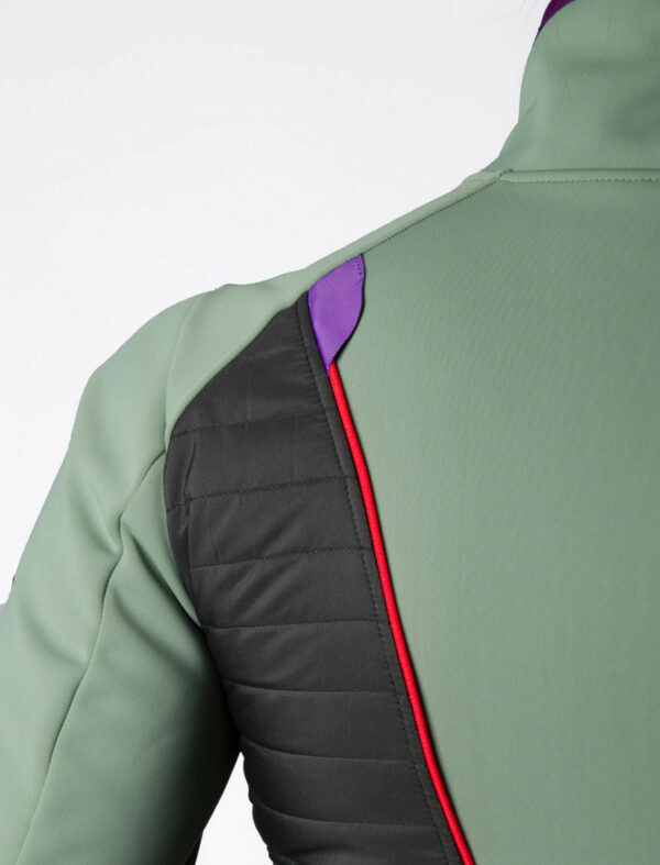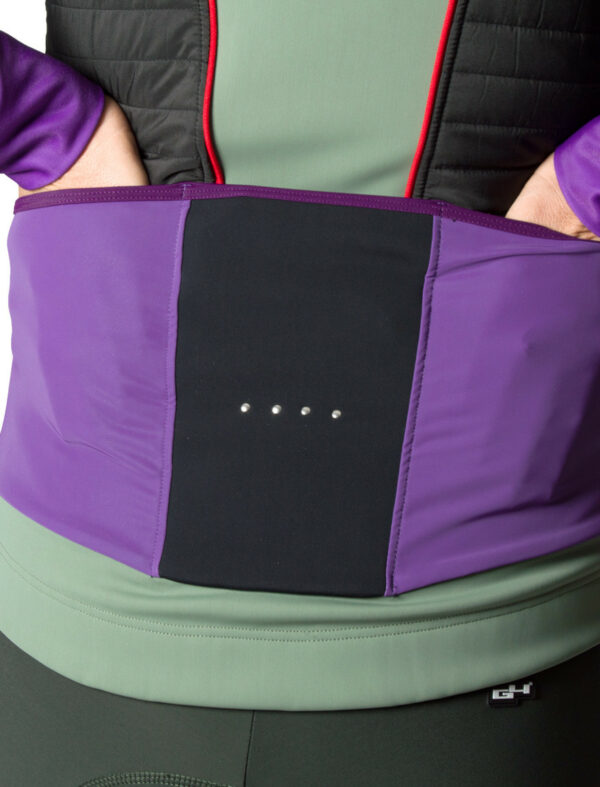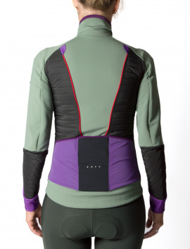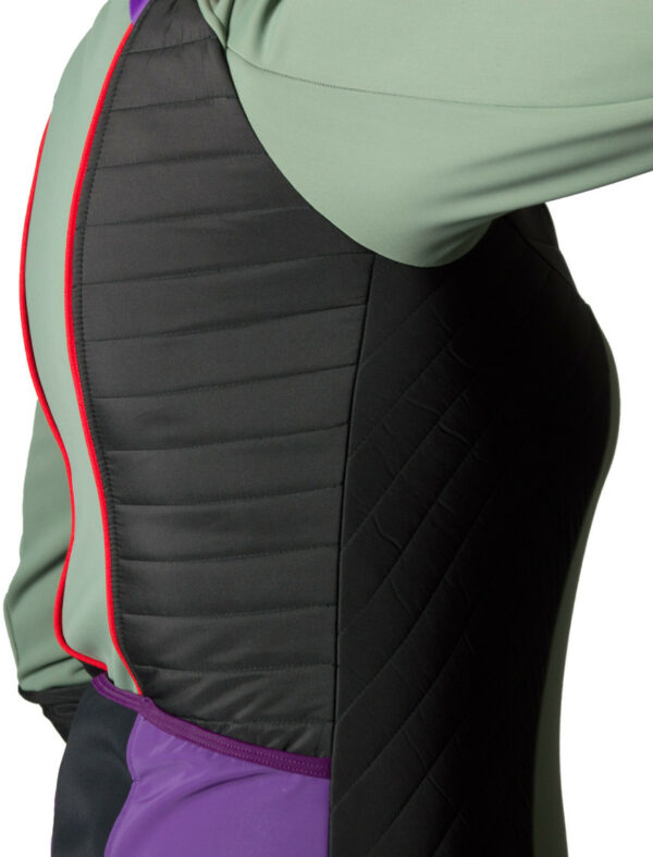 Op het gebied van comfort garanderen we u een zachtheid die wordt verkregen door de fleece-membranen aan de binnenkant en de gewatteerde buitenkant. Je vindt ook een paarse waterdichte ritssluiting met bescherming bij de hoge nek om je warm te houden. Evenals 3 grote achterzakken!