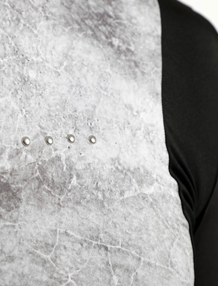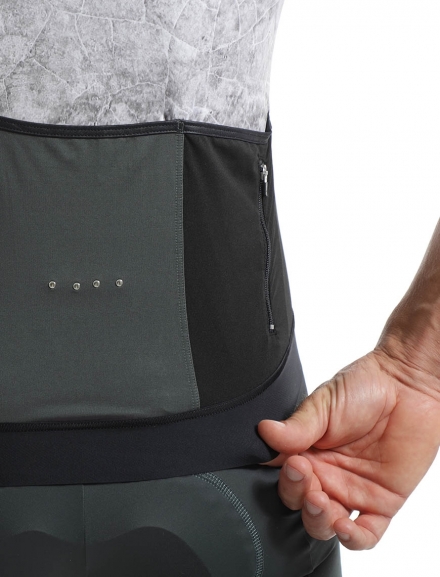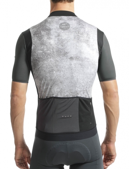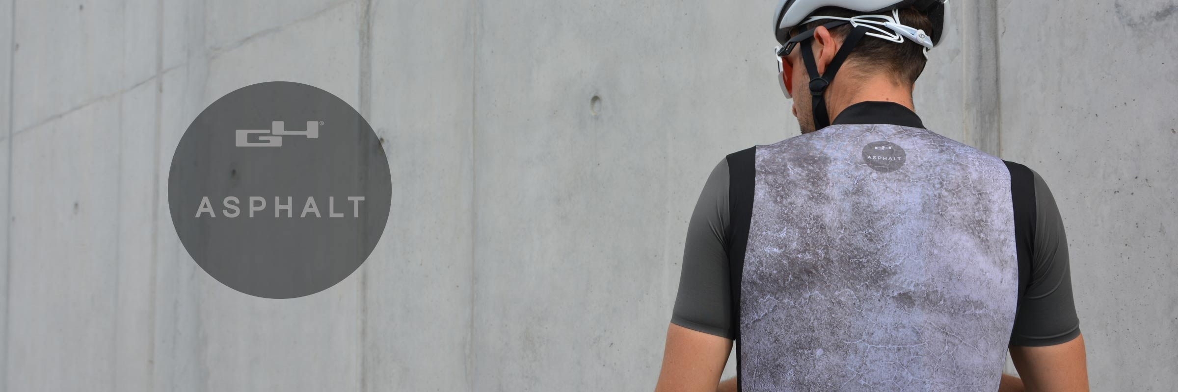 De 4 G4-klinknagels, merknaam, worden zorgvuldig op het hart geplaatst. Deze sterk geventileerde ASPHALT jersey zorgt voor optimale ventilatie. Deze comfortabele wielertrui past perfect op het lichaam, dankzij het 4,5 cm elastiek, met enkele siliconen stippen erop gestikt. De afwerking van de mouwen past perfect bij de biceps van de fietser. Asfaltgrijze chinguard aan de kraag van het shirt. Het shirt is tot in het detail afgewerkt.