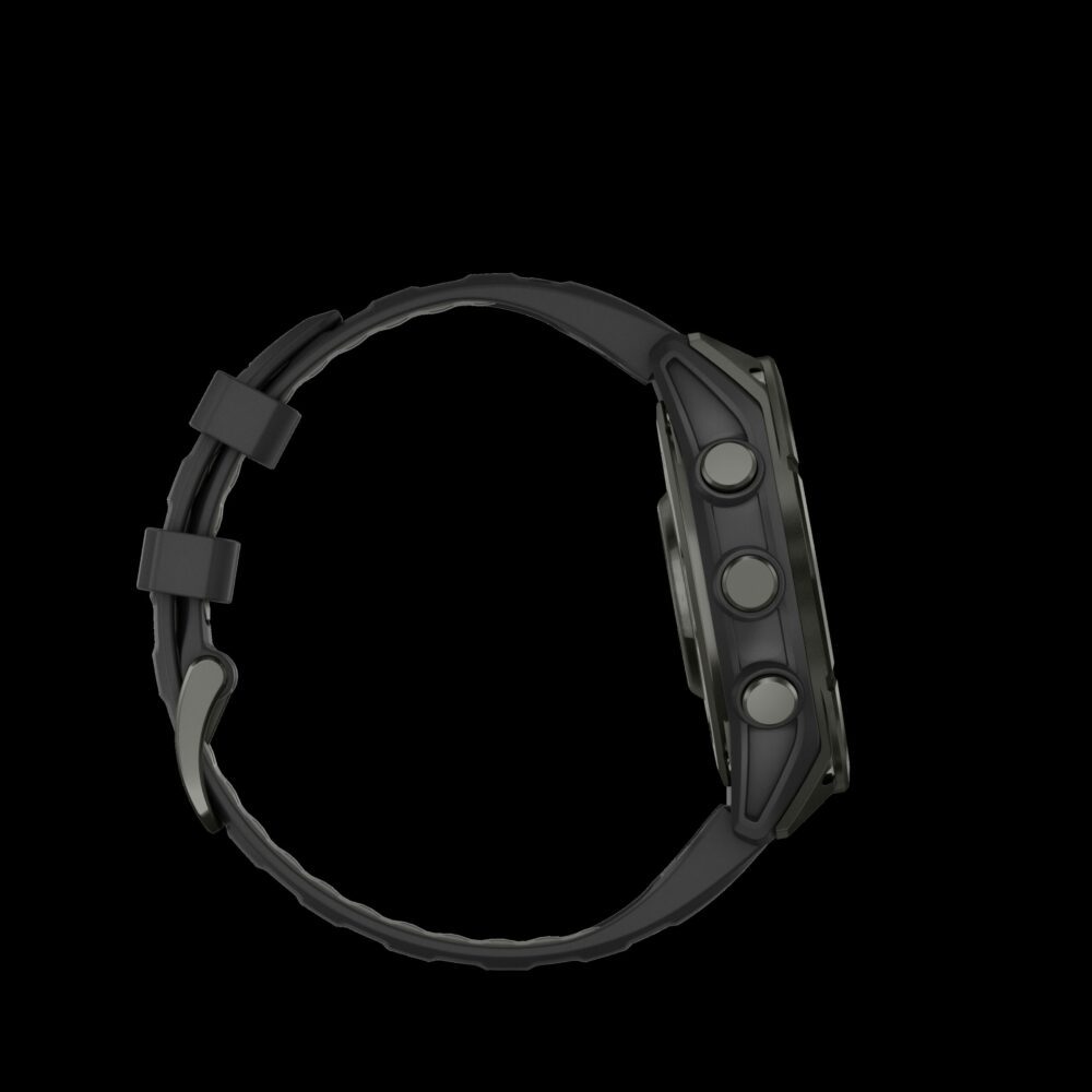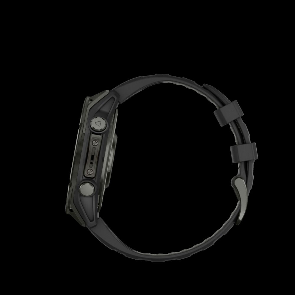 Sporthorloge fēnix® 8 – 47 mm, AMOLED, Sapphire, Carbon grey DLC-titanium met zwarte/pebble grey siliconen band.