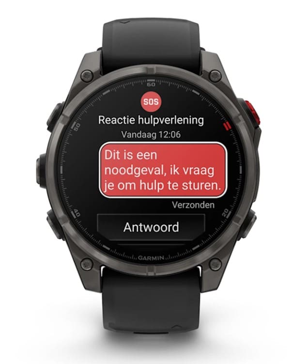Als onze eerste smartwatch met inReach technologie1 voor satelliet- en LTE-connectiviteit, zorgt de fēnix® 8 Pro voor gemoedsrust tijdens je avonturen. Hulp nodig? Activeer een interactief SOS-bericht voor ondersteuning in noodgevallen door het 24/7 bereikbare Garmin Response coördinatiecentrum.