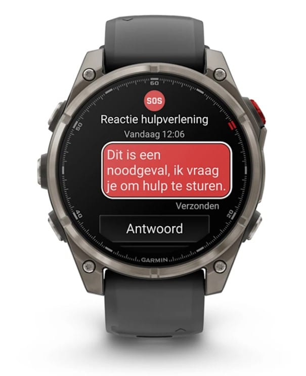 Als onze eerste smartwatch met inReach technologie1 voor satelliet- en LTE-connectiviteit, zorgt de fēnix® 8 Pro voor gemoedsrust tijdens je avonturen. Hulp nodig? Activeer een interactief SOS-bericht voor ondersteuning in noodgevallen door het 24/7 bereikbare Garmin Response coördinatiecentrum.