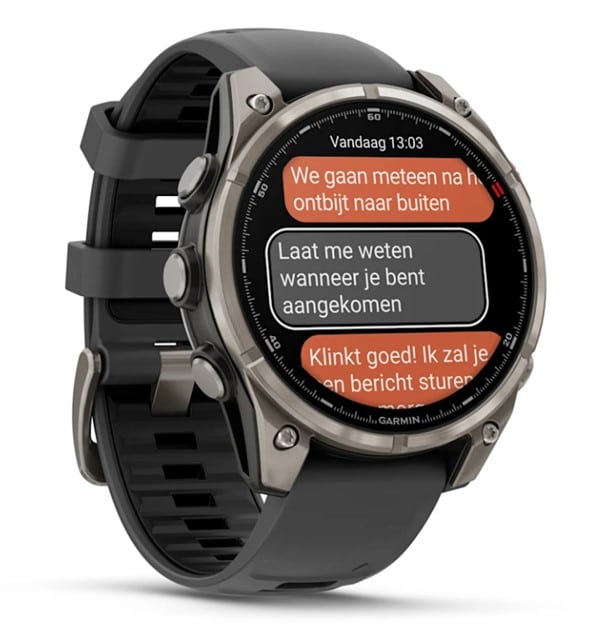 Via een satelliet- of LTE-verbinding kunnen berichten rechtstreeks vanaf je smartwatch worden gedeeld met andere gebruikers van de Garmin Messenger app. De app synchroniseert automatisch met je contactpersonen wanneer je smartwatch is gekoppeld met je smartphone.