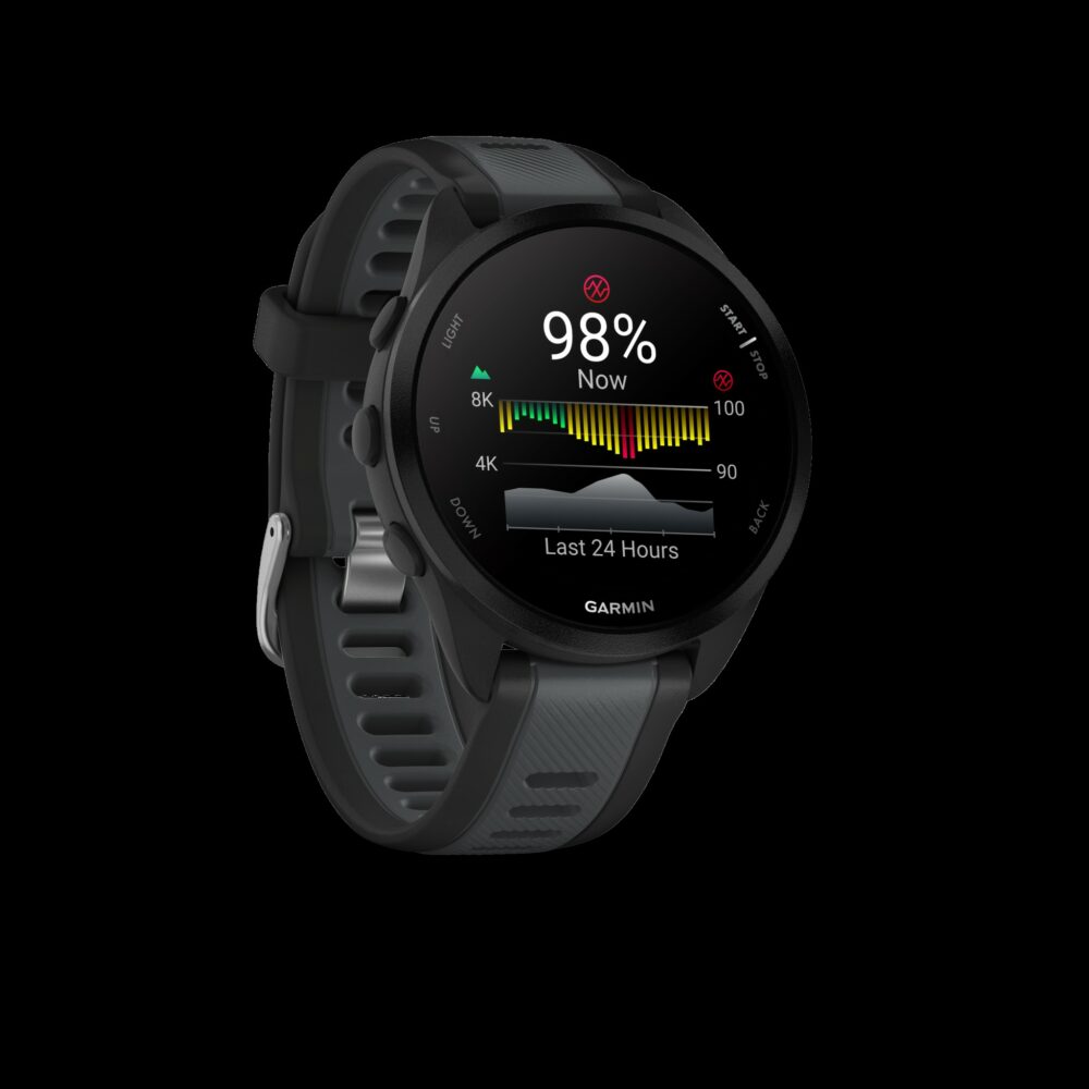 Controleer vervolgens de hersteltijd om te zien hoeveel rusttijd je tussen hardloopsessies moet inbouwen. Koppel je hardloophorloge met je smartphone en je meldingen worden direct op je pols getoond. Krijg een vollediger beeld van je gezondheid, en niet slechts een algemene indruk, dankzij de Forerunner® 165-hardloophorloge. Deze heeft een batterijduur van maximaal 11 dagen in de smartwatchmodus.