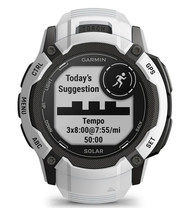 Bekijk je hele week met aanbevolen dagelijkse workouts, die na elke hardloop- of fietssessie worden aangepast aan je prestaties en herstel, evenals de aankomende races die in de agenda van de Garmin Connect smartphone-app worden weergegeven.