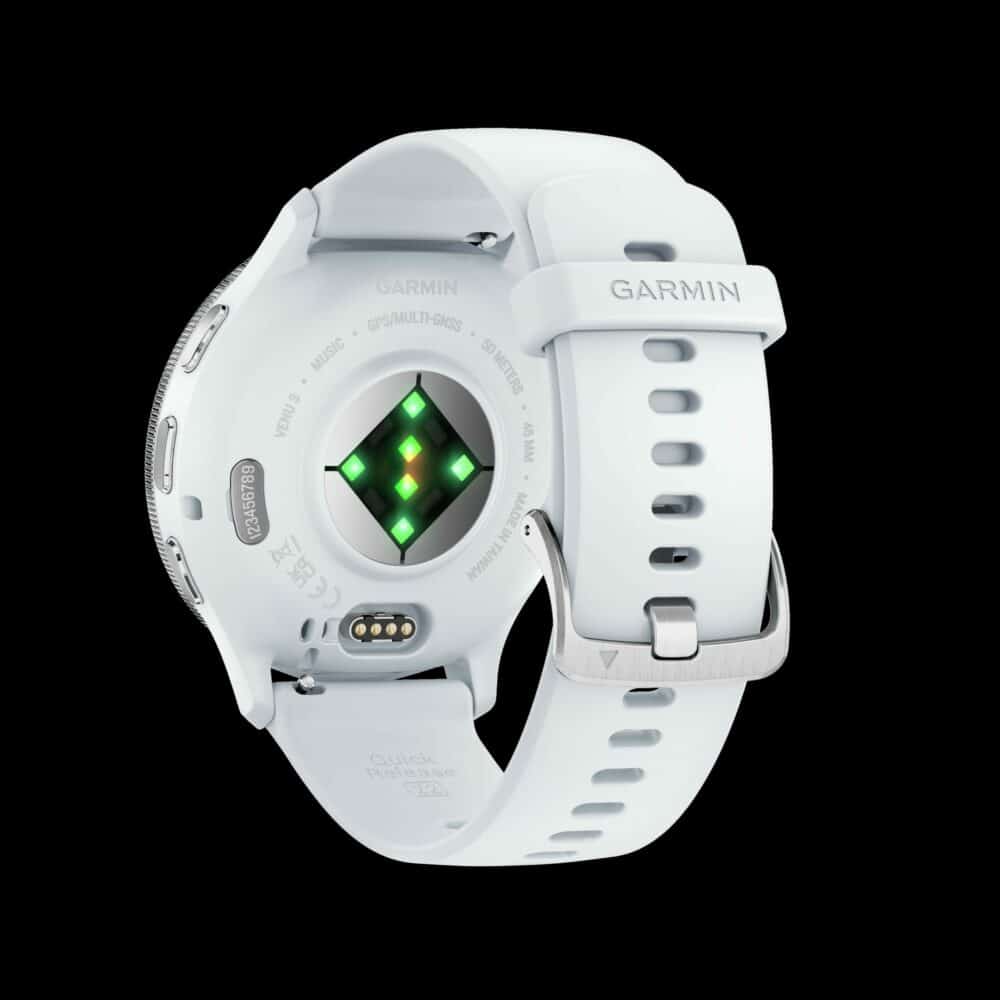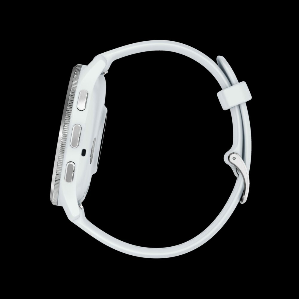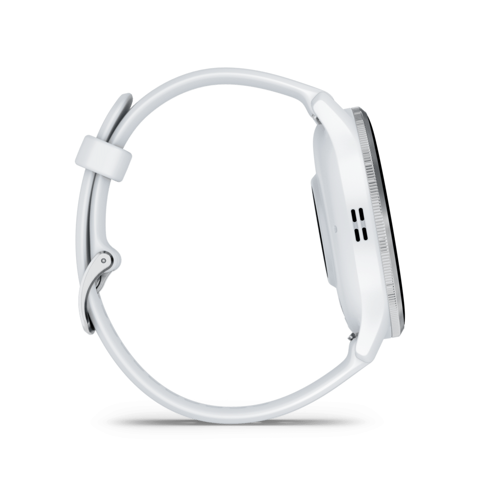 Sporthorloge: GARMIN Venu® 3, Zilveren rand van roestvrij staal met whitestone behuizing en siliconen band