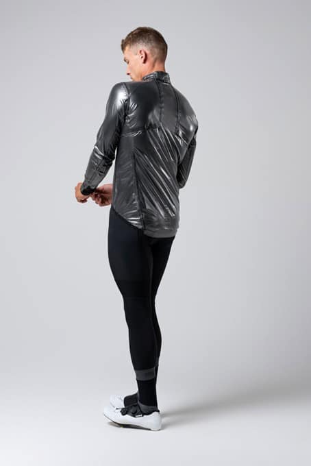 Ontdek onze ultralichte regenjas voor racefietsen, jouw ideale metgezel om elke plotselinge weersverandering het hoofd te bieden. Ontworpen om bescherming te bieden in onvoorspelbare situaties, zoals afdalingen in de bergen of lange herfst- en lenteritten, houdt hij je comfortabel in wind en lichte regen. In deze nieuwe evolutie hebben we een glanzende afwerking aan onze LIGHTSHELL-stof toegevoegd. We hebben ook de structuur verbeterd om hem comfortabeler te maken en het ademend vermogen vergroot met nieuwe openingen aan de zij- en achterkant.