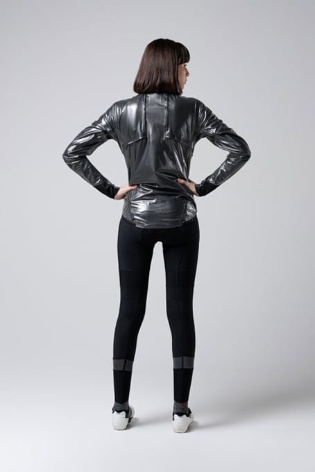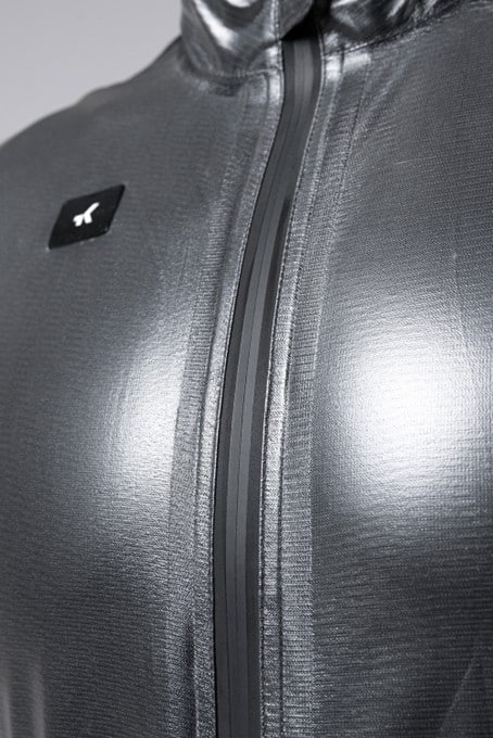 - De LIGHTSHELL-stof heeft fantastische technische eigenschappen: hij is lichtgewicht, regenbestendig en ademend. Dankzij de sneldrogende eigenschappen kun je hem snel opvouwen nadat het gestopt is met regenen. Deze nieuwe versie heeft een glanzende afwerking die de zichtbaarheid vergroot en een avant-gardistische stijl biedt. Alle naden zijn thermisch geseald en de schouders zijn voorzien van extra siliconen versteviging.