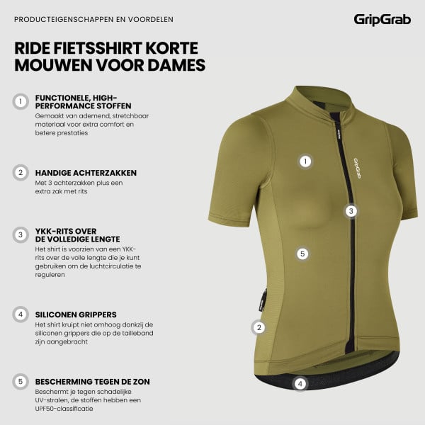 Fietsshirt GribGrab fietsshirt Ride Short Sleeves woman Olive Green