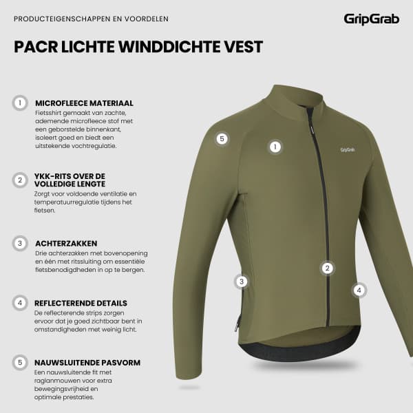 Fietskleding: Gripgrab Jersey Thermisch PACR-fietsshirt met lange mouwen Olive Green