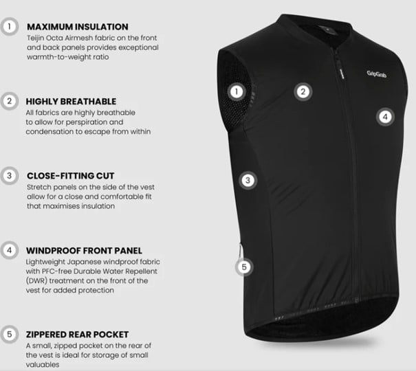 Eigenschappen fietsjassen GripGrab PACR-Midlayer fietsvest – Black