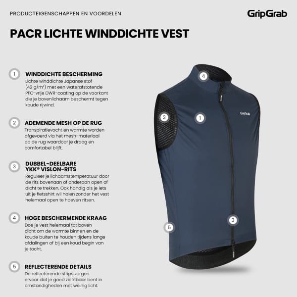 Fietsjassen: Gripgrab Vest WindBuster Windproof Lightweight Navy Blue