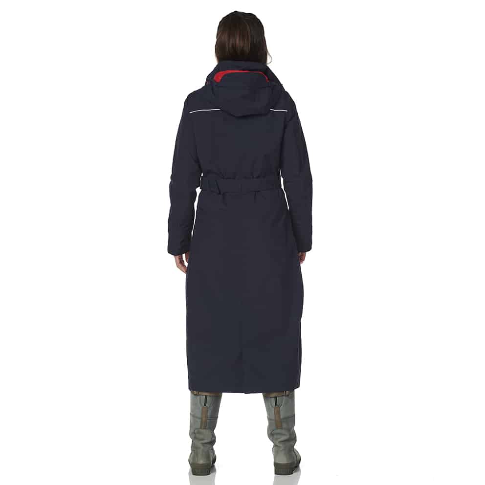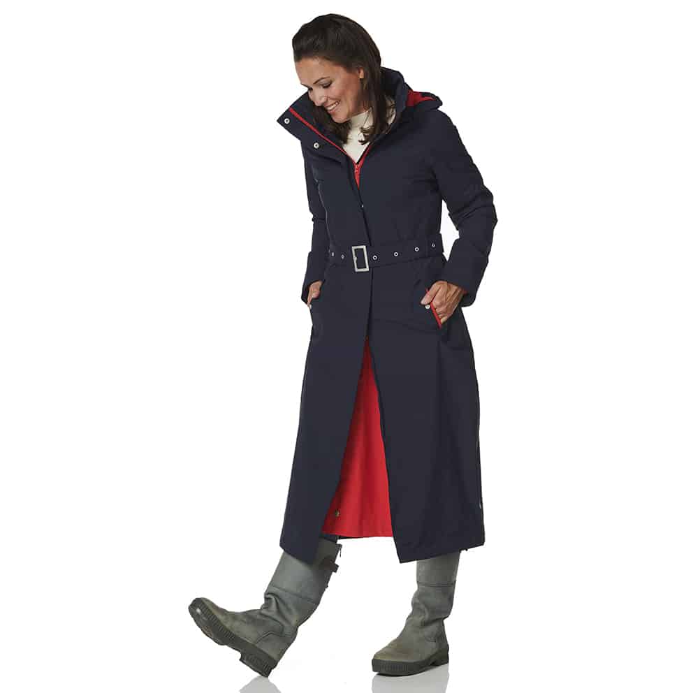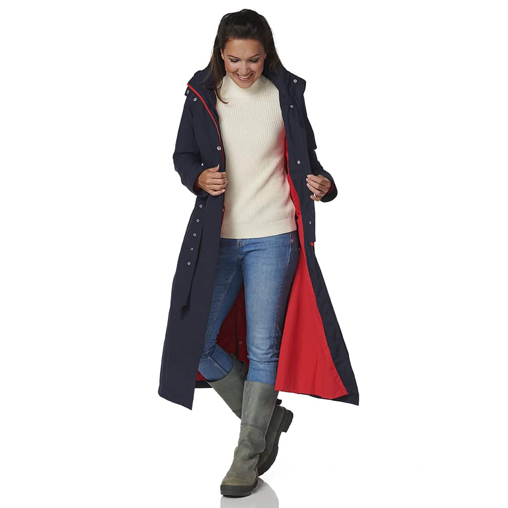 De blauwmet rode lange Montreal regenjas voor dames is het pronkstuk van HappyRainyDays. Deze blauw/rood lange Montreal regenjas voor dames met afneembare capuchon van HappyRainyDays rijkt tot aan de enkels. Het bijzondere aan deze jas is dat hij een extra tussenstuk heeft speciaal voor op de fiets. Met deze jas heb je geen regenbroek nodig om droog te blijven op de fiets. Door de flap, die ook naar binnen geritst kan worden, heb je extra bewegingsruimte en blijven je benen droog tijdens een fietstocht of wandeling. De buitenzijde van de jas is van gecoate nylon waardoor de jas niet alleen 100% waterdicht is maar ook ademend. De binnenzijde is van 100% katoen voor het draagcomfort. Kortom een unieke jas met een uitstekende pasvorm.