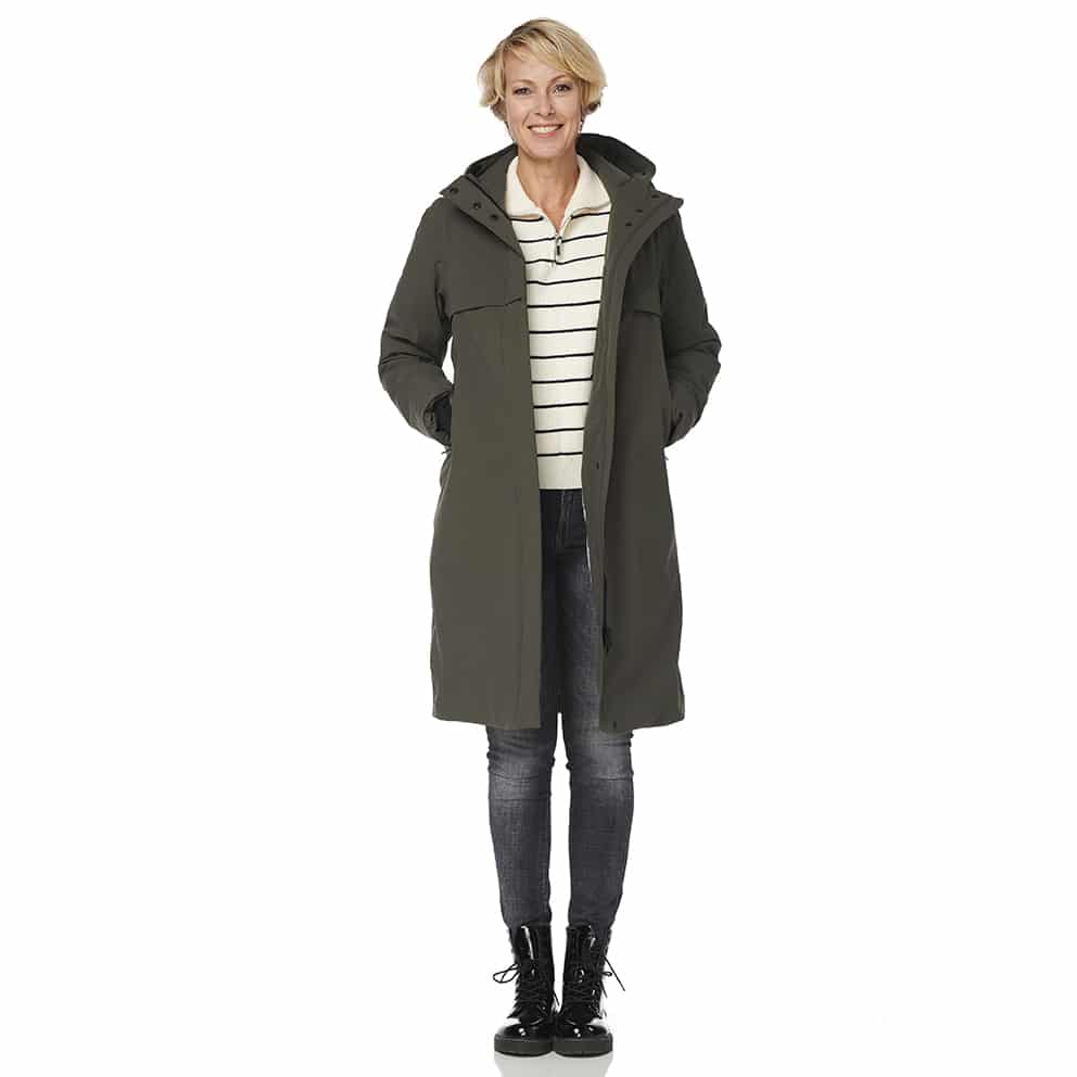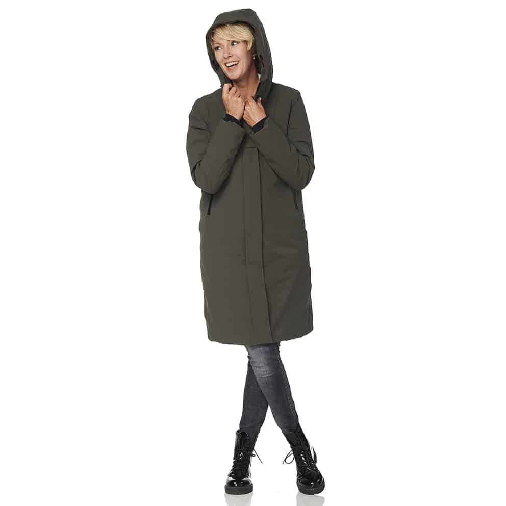 Deze olijf groene warme gewatteerde winterregenjas model Boston is een must have deze winter. Met de lengte tot op de knie en een warme thermolite wintervoering de ideale regenjas èn winterjas. De voorsluiting heeft drukkers en een 2 way rits, zodat de jas ook ideaal is voor op de fiets. De zakken hebben waterdichte ritsen.