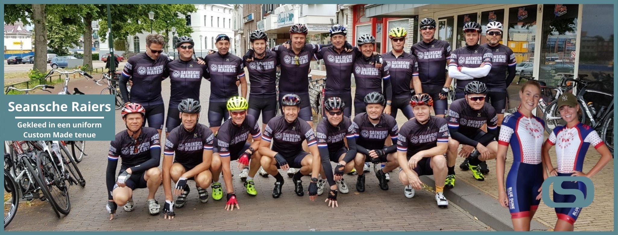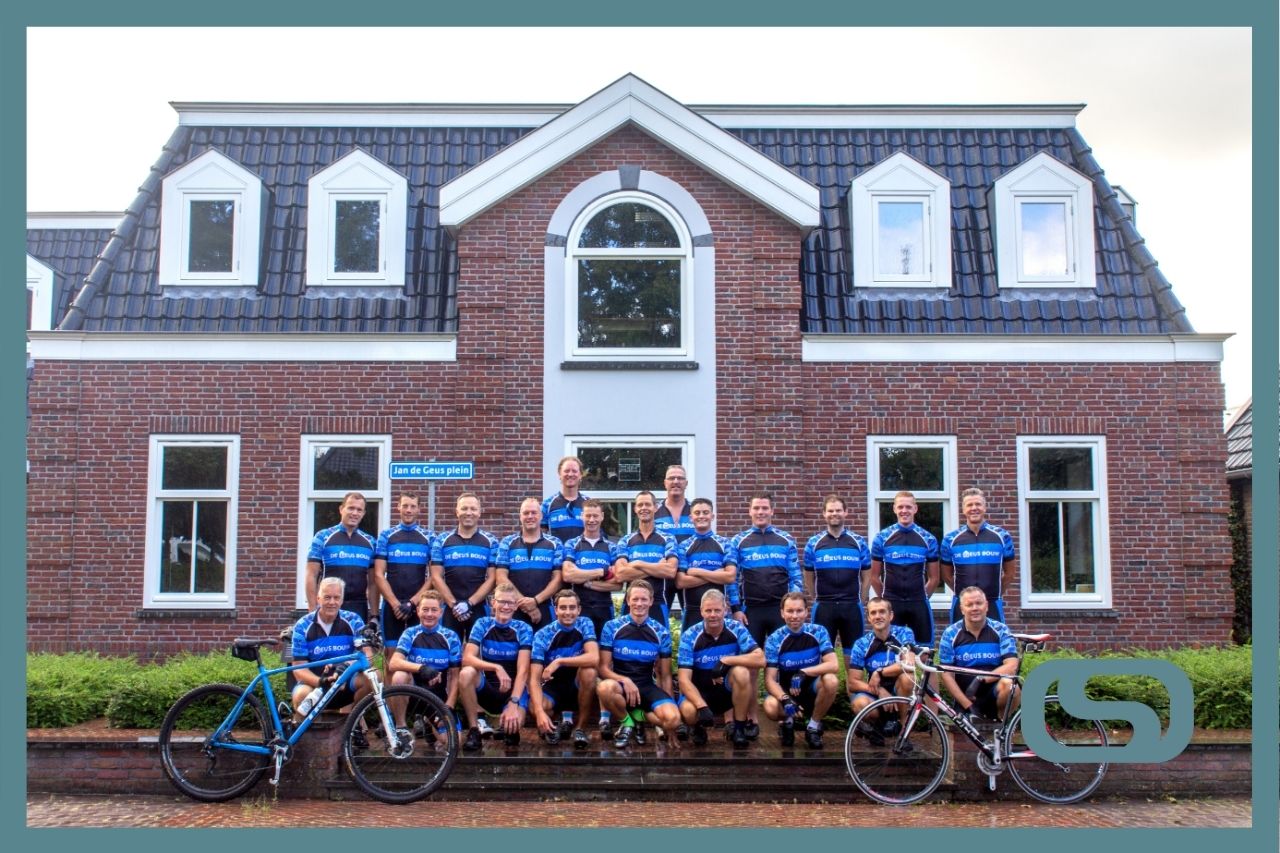 Handig om te weten: hoe meer stuks je afneemt, hoe voordeliger het wordt. Een goede reden om voor het hele wielerteam Custom made sportkleding te bestellen. Het wielerteam van De Geus Bouw BV uit Broek op Langedijk ging je al voor in stijlvolle outfits voorzien van hun logo in opvallend helblauw.